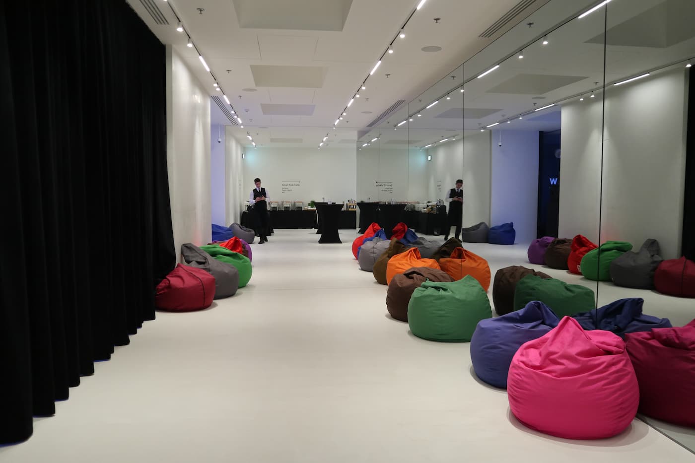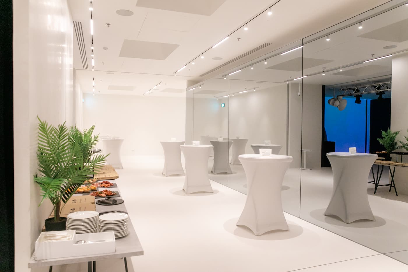 Currently, Small Talk Cafe operates as a separate rental space. External contractors providing catering services can use this area to set up food and beverage serving lines, as well as to store necessary dishes and utensils. Also available for use are an ice generator, a hand wash station, and glass refrigerated display units. Next to the café, there is a room with a refrigerator and shelves for storing a limited amount of equipment and temporary structures. By agreement, the Small Talk Cafe area can be branded with decorative elements.