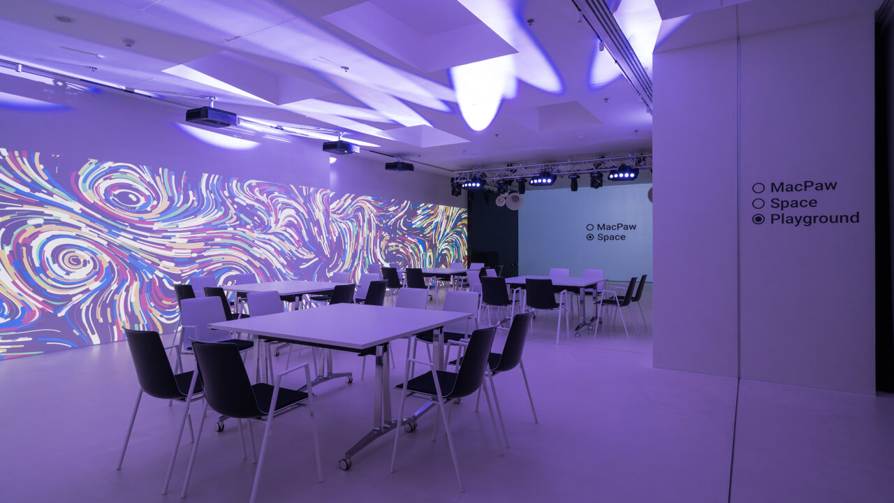 What do kids do at the playgrounds? Play, make friends, have fun. This Playground is meant for grownups who never lose this stirring vibe. It’s the right spot for sharing your thoughts with like-minded people, getting inspired, and turning your ideas into future projects. Playground is spacious, full of light, and barrier-free. Consider it for presentations, lectures, workshops, roundtables, masterclasses, or even DJ parties (yep, we have a fantastic void sound system here and the latest technical equipment). We will give you more chairs or tables and take care of anything else if needed.