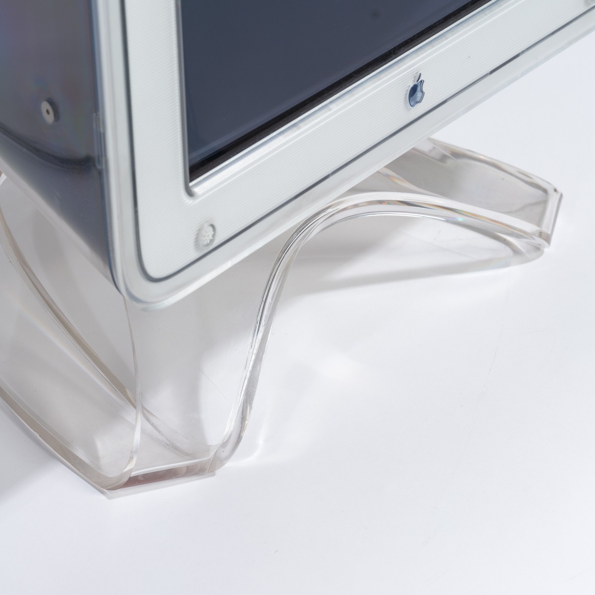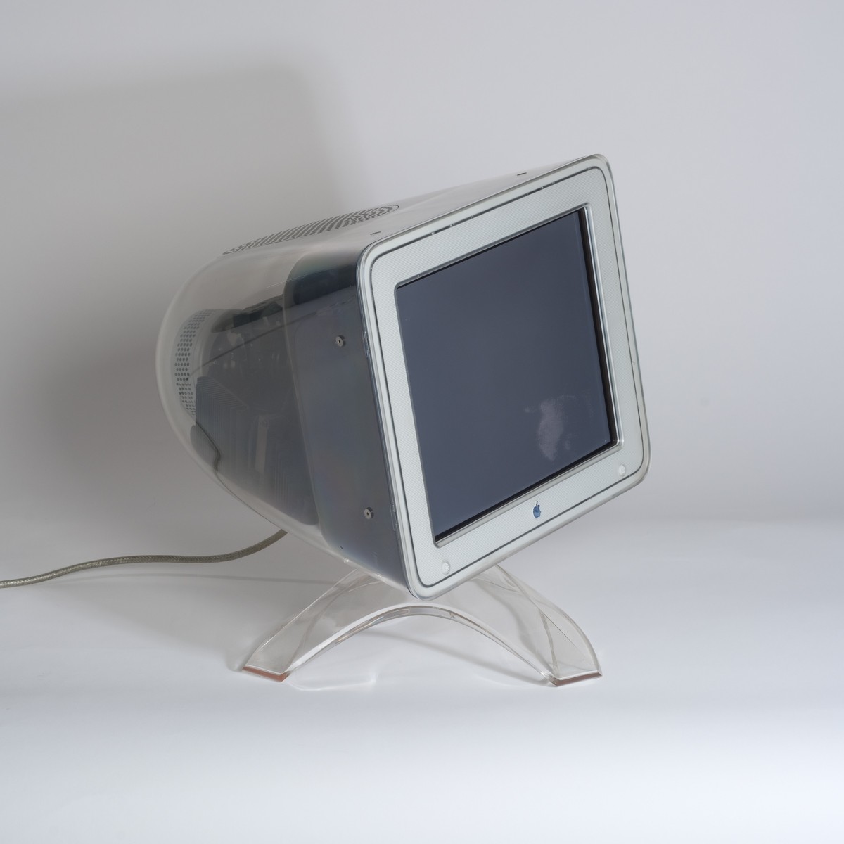 2000 рік. Apple Studio Display став елегантним й інноваційним 17-дюймовим CRT-монітором, який розробили як доповнення до настільних комп’ютерів Apple, зокрема Power Macintosh G3. Він отримав прозорий корпус кольору чорниці та забезпечував чітке, яскраве зображення. Цей дисплей втілював прагнення Apple поєднувати стиль із високою продуктивністю. Завдяки своєму дизайну та якості зображення він став популярним серед креативних професіоналів.