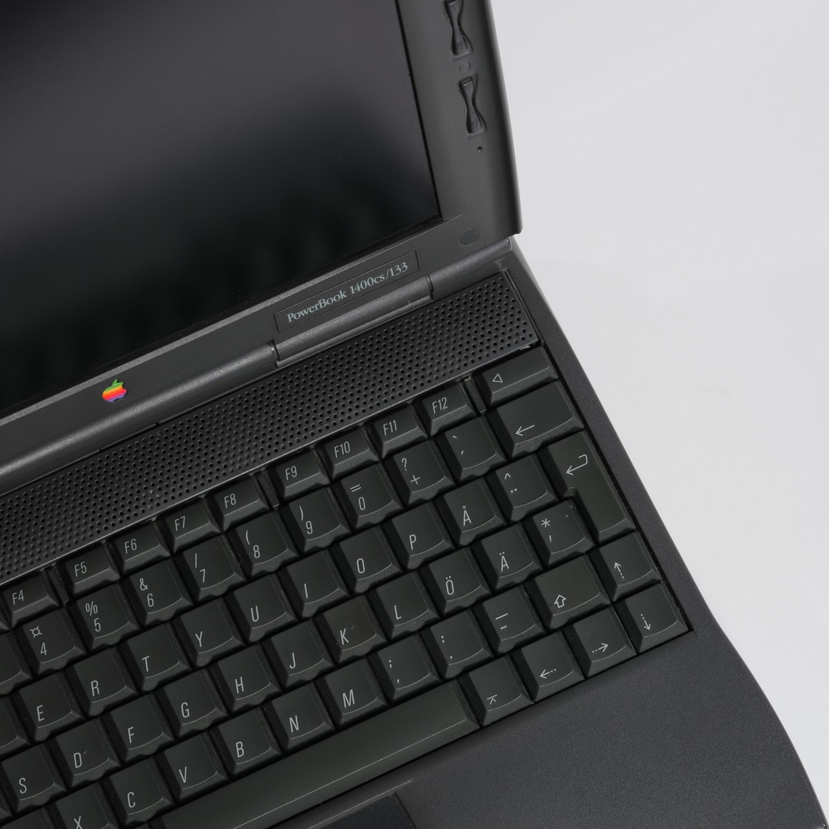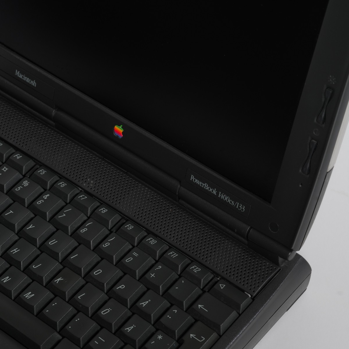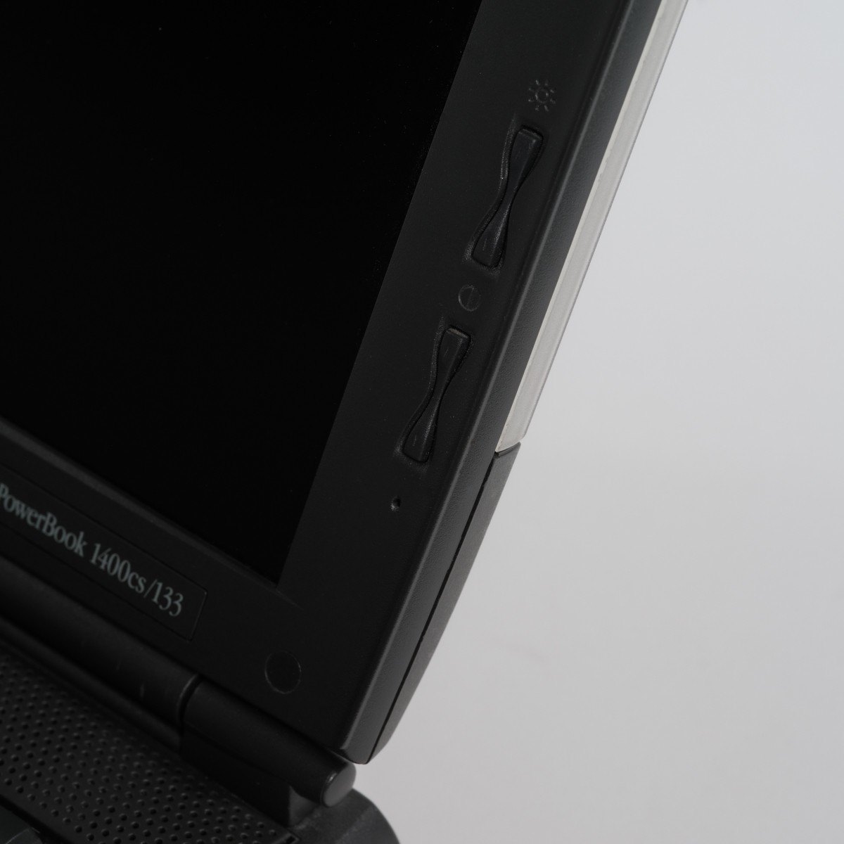 1996 рік. PowerBook 1400 Series став універсальним і гнучким ноутбуком, який швидко здобув популярність серед студентів і професіоналів. Модульний дизайн дав змогу користувачам легко замінювати компоненти, зокрема CD-ROM, або розширювати оперативну пам’ять, що зробило його передовим пристроєм свого часу. PowerBook 1400 був доступний у двох версіях: 1400cs зі стандартним пасивним матричним дисплеєм і 1400c з яскравішим активним матричним екраном. Модель також мала прозору кришку, під яку можна було вставляти друковані обкладинки, додаючи пристрою персоналізованого стилю.