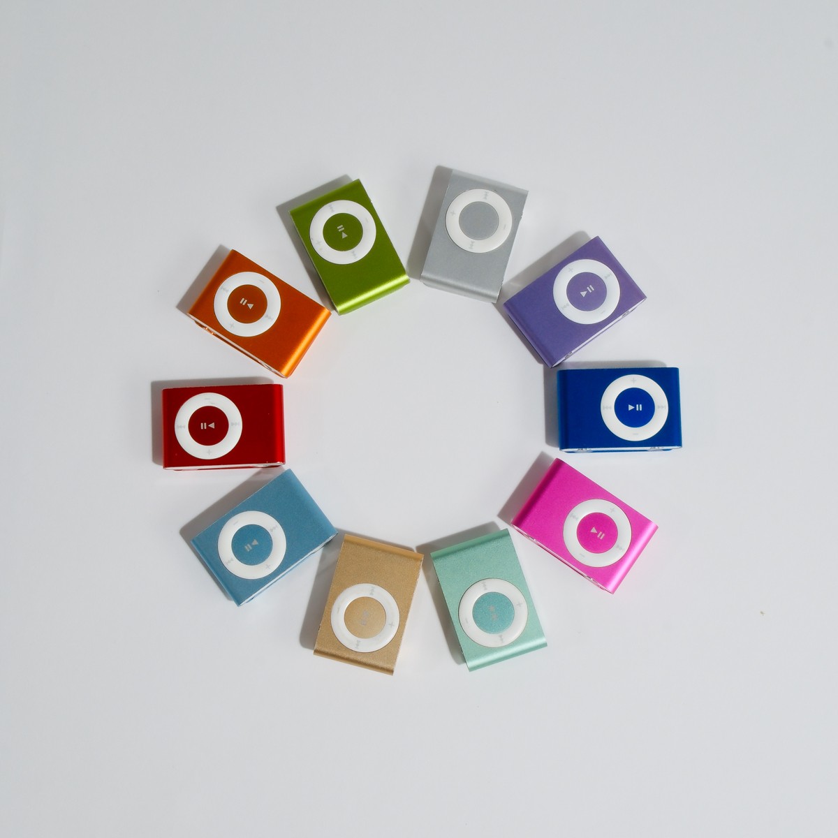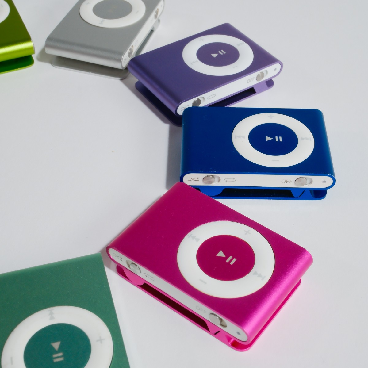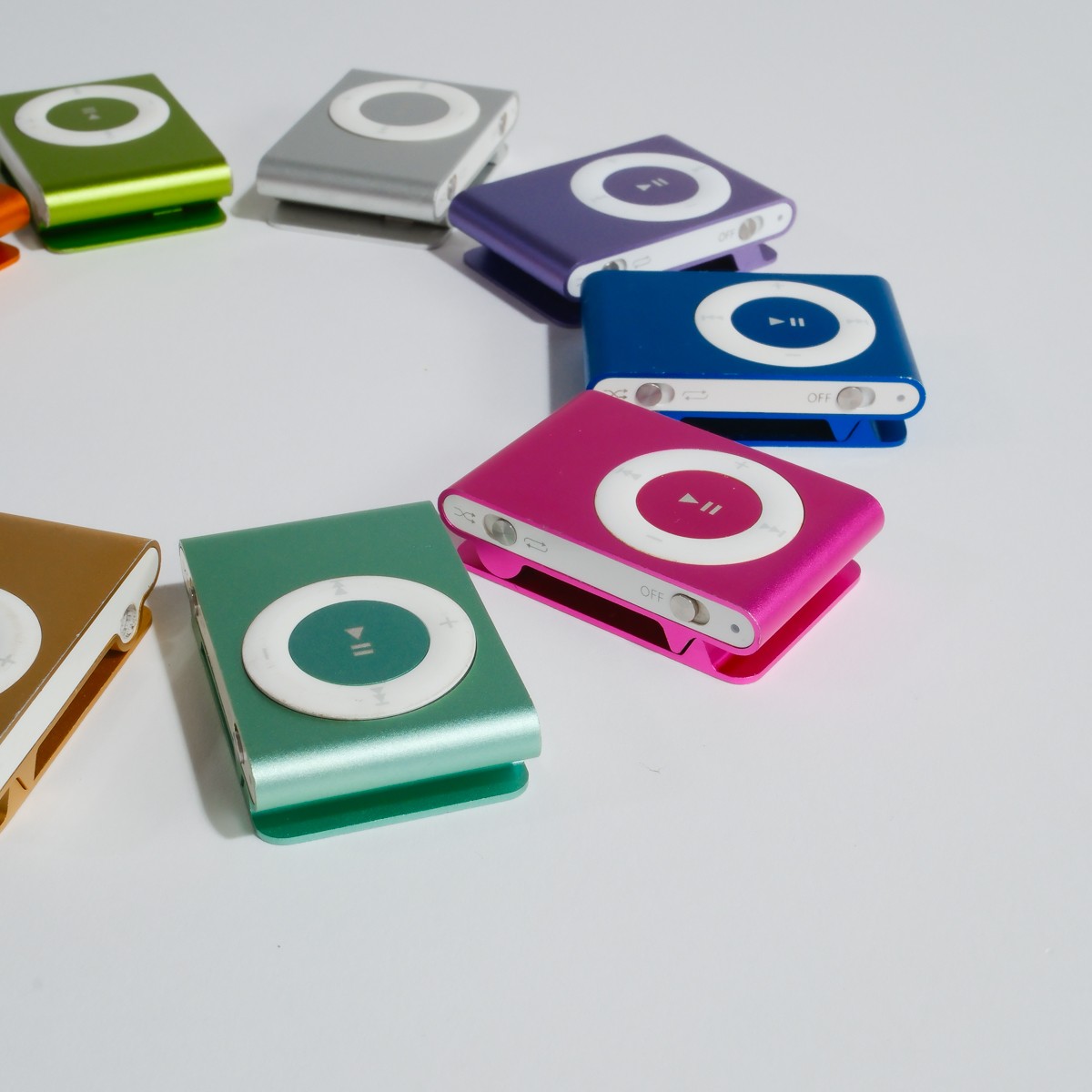 2006 рік. Apple випускає iPod Shuffle другого покоління — менший, стильніший і яскравіший. Ця версія отримала елегантний алюмінієвий корпус і нову палітру кольорів, додаючи ще більше характеру в лінійку портативних музичних плеєрів Apple. Вбудована кліпса зробила iPod Shuffle ще зручнішим — плеєр легко кріпився до одягу чи сумки задля максимальної портативності. Попри компактний розмір, він залишався простим та інтуїтивним, з фірмовим режимом випадкового відтворення, що додавав музиці елемент несподіванки. Палітра кольорів в колекції: блакитний, синій, зелений, аквамариновий, фіолетовий, рожевий, червоний, помаранчевий, золотистий, сріблястий.