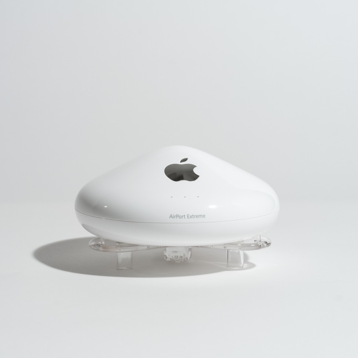 2003 рік. Apple представила AirPort Extreme Base Station — значне оновлення в бездротових технологіях. Пристрій підтримував стандарт 802.11g, обслуговував до 50 користувачів і мав вдосконалені функції безпеки, зокрема WPA-шифрування. Ця модель розширила можливості Wi-Fi від Apple і встановила нові стандарти надійності та ефективності. Завдяки поєднанню стильного дизайну й функціональності, AirPort Extreme Base Station стала незамінним рішенням для дому й офісу.