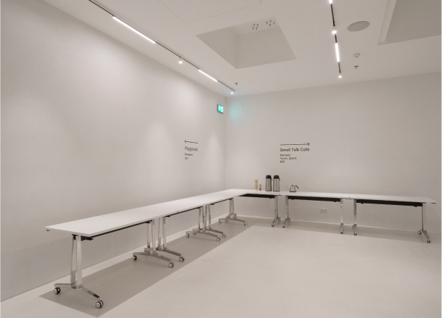 Наразі Small Talk Cafe функціонує як окрема зона для оренди. Зовнішні підрядники, які надають послуги кейтерингу, можуть використовувати цю площу для організації лінії видачі страв і напоїв, а також для розміщення необхідного посуду та приладдя. Доступні для використання також льодогенератор, рукомийник та скляні вітрини з охолодженням. Поруч із кав'ярнею розташована кімната, де є холодильник і полиці для зберігання обмеженої кількості обладнання та тимчасових конструкцій. За погодженням зона Small Talk Cafe може бути забрендована декоративними елементами.